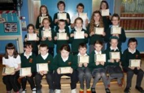 Congratulations to Danny Mayne, Raymond McAteer, Alex Jordan, Jack Maguire, Niamh Symlie, Orlaith Ferris, Amy McPolin, Ella Rose Quinn, Caitlin Penny, Tasja O'Hare, Julia Zwolinska, Liam Fitzpatrick, Kieran Doran Gartland, Eimear McMullan, Helen Vaughan, Ruairi Andrews, Demi Moore and Aoife Smith on being awarded a class certificate for good work during the week commencing 5th November.
